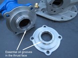Generally, the reproduction thrust plates do not incorporate oil grooves within the thrust contact face and for this reason differ from the standard C/D/M and J Type original design. These grooves provide essential lubrication between the contact surface with the thrust washer.