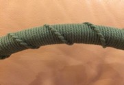 A typical MMM steering wheel will utilise approximately 46 metres of 3mm diameter braided glace cord. Vintage MG Parts have a company working for them who calibrate the weaving machine to supply this 6 plait braid in apple green. We have also used this cord to bind the road springs with the period 'zig-zag' pattern. It makes a superb job but tough on the fingers to bind! Tip - we use cloth Tessa Tape as a platform, we also then coat the cord with two generous coats of Renovo Ultra Proofer to create a waterproof weather barrier.
